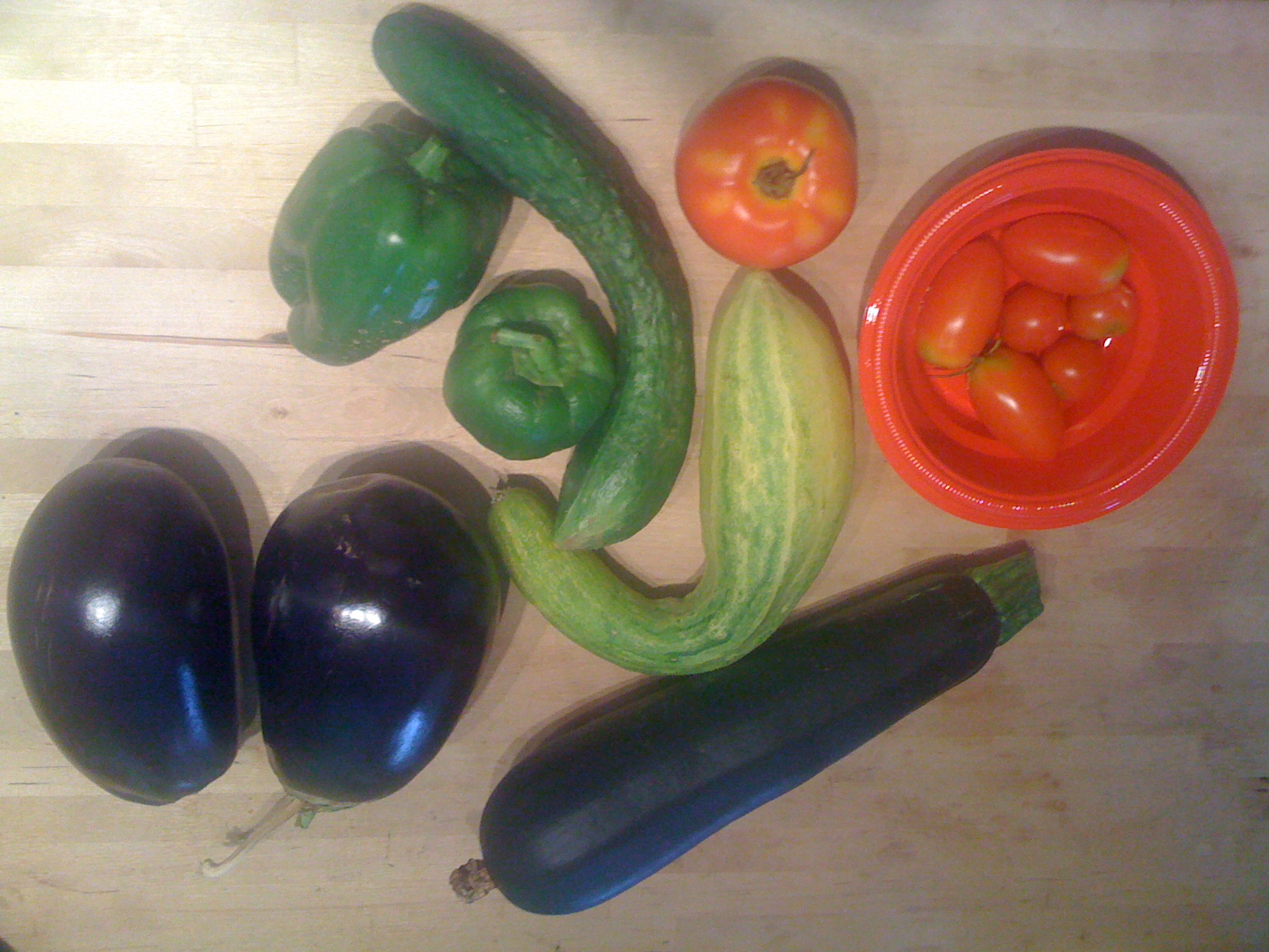 In martial arts, patience and care lead to great gains.  The same goes for gardening!  I’ve been seeing some nice results from my first attempt at growing my own vegetables this summer.  Here are some  just picked today.