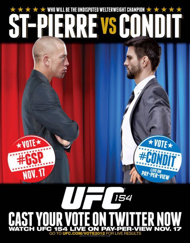 Dana White can utter just two tiny words to sell Saturday night’s UFC 154 Pay Per View to the masses: “He’s Back.” Saturday night in Montreal, Welterweight Champion Georges St. Pierre returns to the cage for the first time since April 2011. Since wrecking his ACL prior to UFC 137, GSP has watched from the sidelines as the 170 pounders became one of the deepest and most talent rich divisions in the UFC. Of all the talented contenders that came to prominence in GSP’s absence, Carlos Condit rose above the likes of Shields, Ellenberger, Fitch, and Hendricks to become the Interim Welterweight Champion.